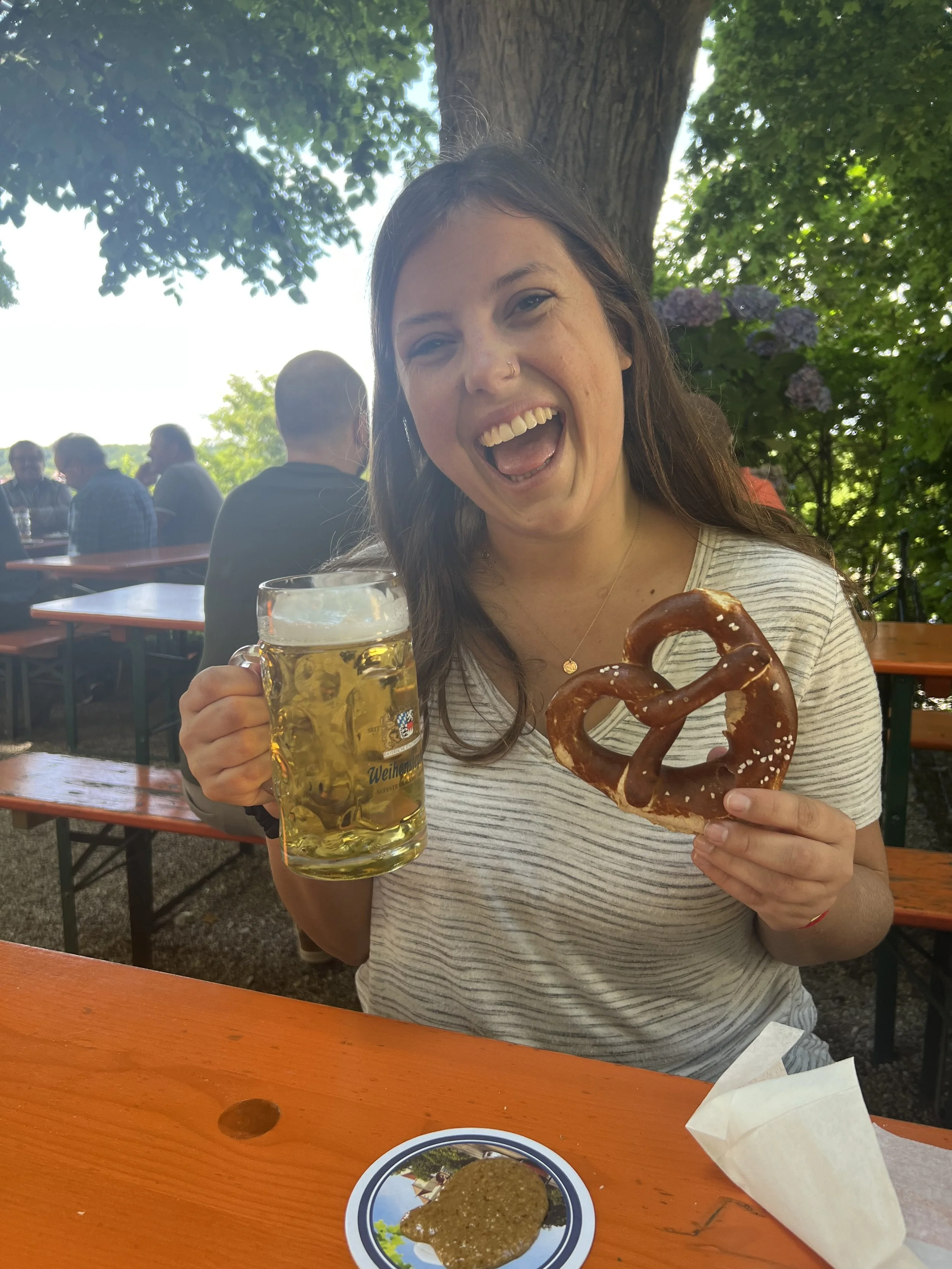 We stopped in Germany for a pretzel and beer on the way back to Cambodia, checking another country off our lists!