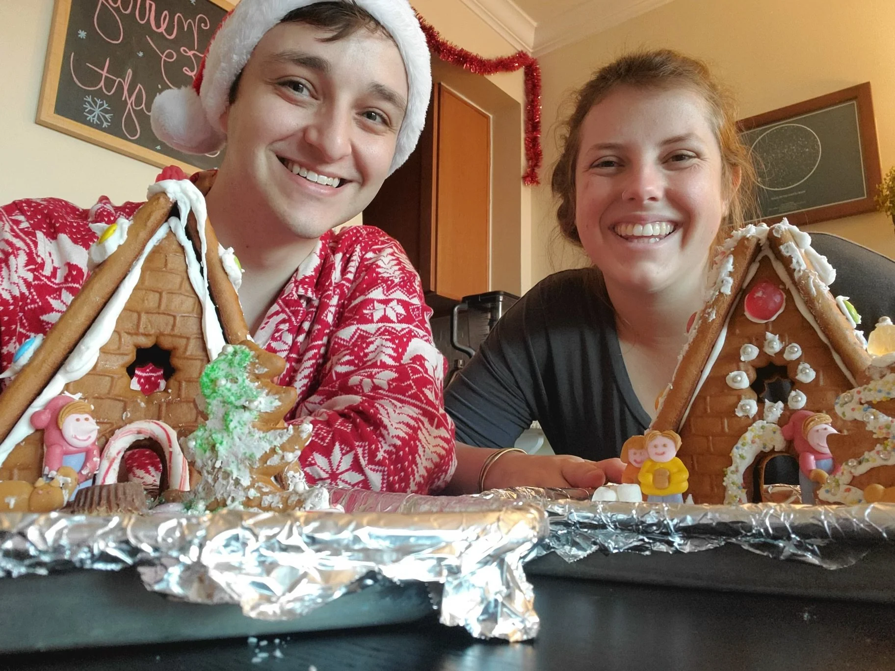 We spent our first holidays together carving pumpkins for Halloween, cooking a Thanksgiving dinner for two, and making gingerbread houses in matching Christmas PJs.