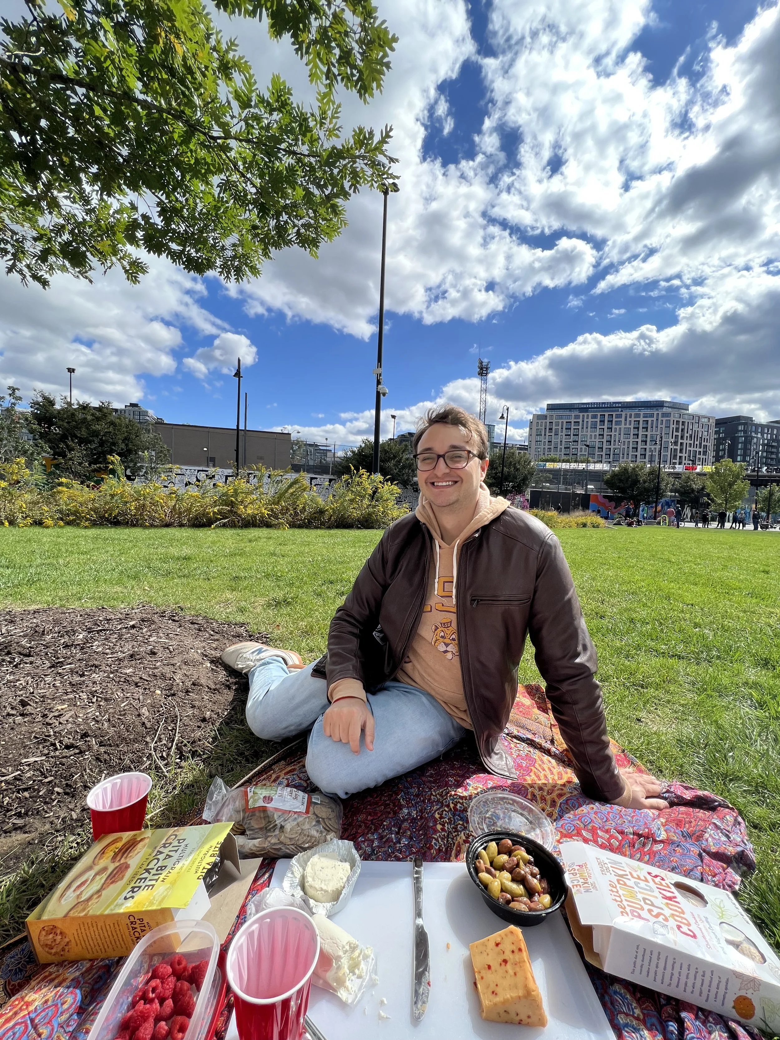 After a cheese-board picnic in the park (one of our favorite activities), Michael proposed to Bailey. She was completely surprised — which was a feat, since Michael is terrible with secrets — and said yes multiple times!